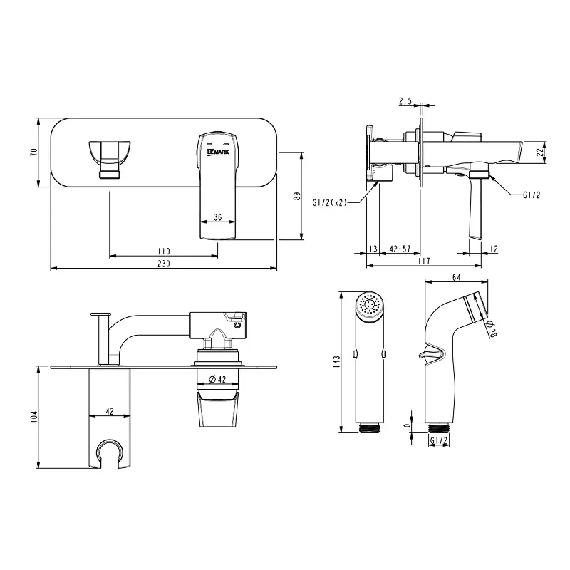 Душ гигиенический Lemark Ursus LM7220BL – идеальное дополнение душевой зоны. Корпус изготовлен из качественных материалов и имеет защитное покрытие, что обеспечивает прочность и надежность изделия. Комплектация: смеситель, лейка, шланг и держатель.