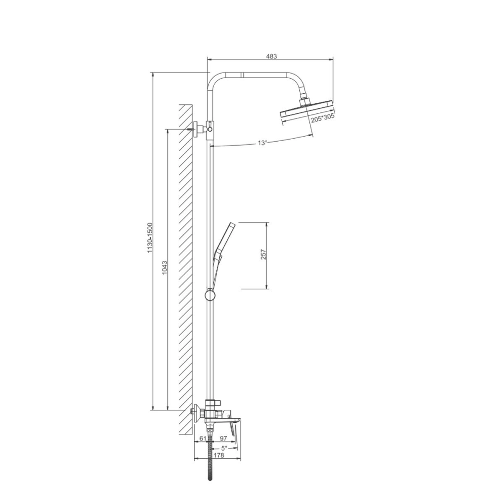| Диаметр верхнего душа, мм | 305 |