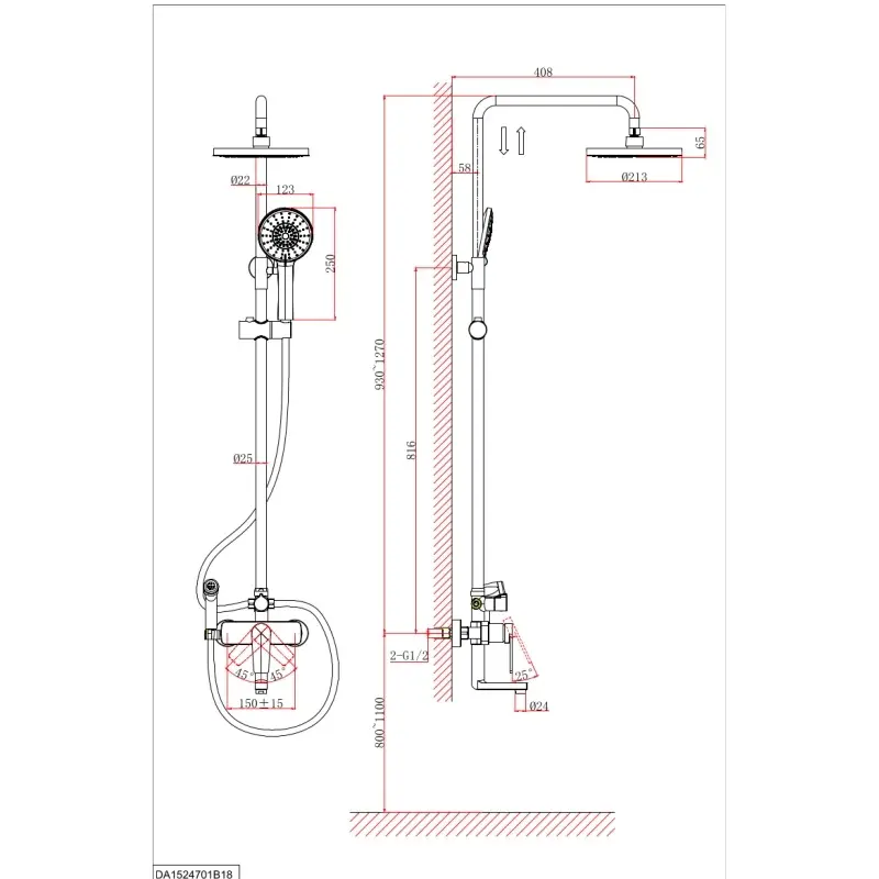 Душевая система D&K Bayern.Furth с гигиеническим душем Черный матовый DA1524705B18