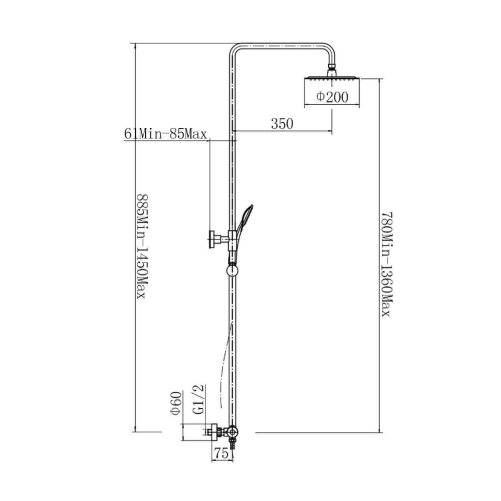 | Диаметр верхнего душа, мм | 200 |