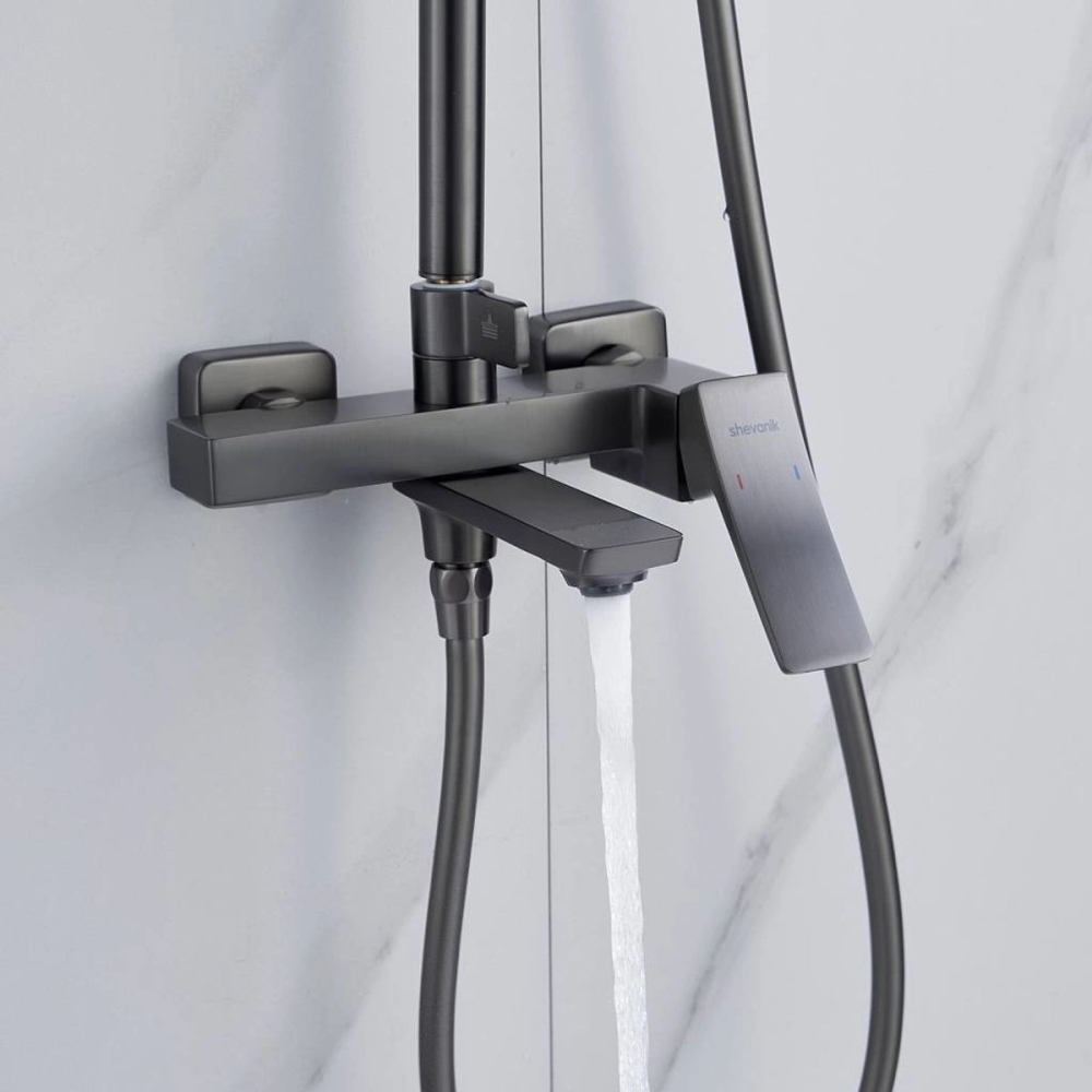 Душевая система Shevanik S44 с изливом Оружейная сталь S4436T