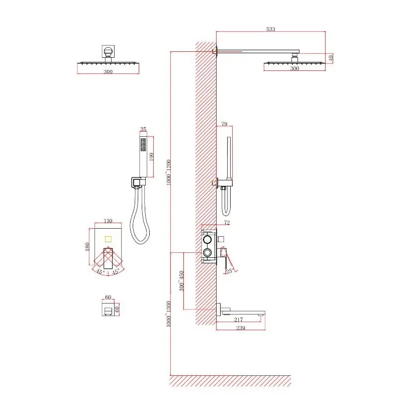 Душевая встройка D&K Bayern.Liszt – идеальное дополнение душевой зоны. Система изготовлена из качественных материалов и имеет защитное покрытие, что обеспечивает прочность и надежность изделия. Комплектация: смеситель , изли, лейка ручного и тропического душа.