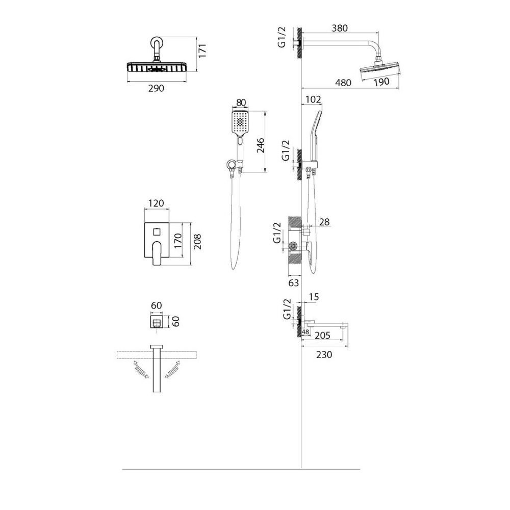 Душевая встройка Grossman Classic идеальное дополнение душевой зоны. Система изготовлена из качественных материалов и имеет защитное покрытие, что обеспечивает прочность и надежность изделия. Комплектация: смеситель, излив, лейка ручного и тропического душа.