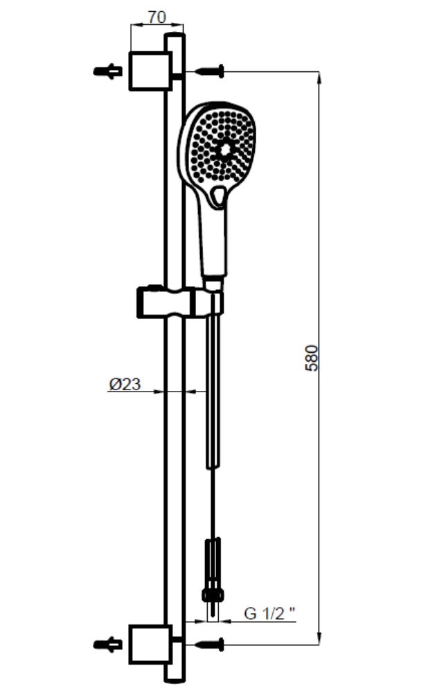 Душевой гарнитур Azario Nevo имеет высоту 58 см . В комплект поставки входит душевая стойка, душевая лейка, настенное крепление, шланг для душа.