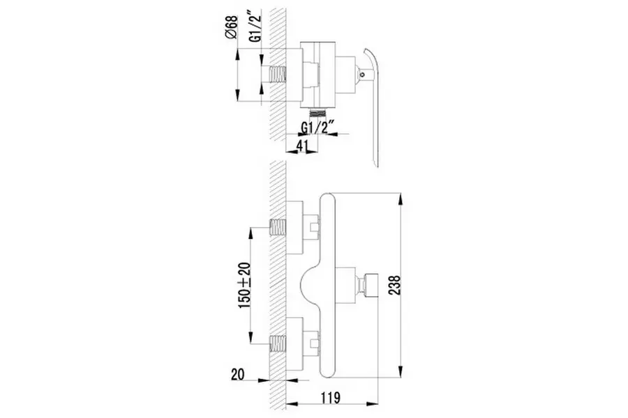 Смеситель для душа Lemark Melange LM4903CW изготовлен из качественной латуни и имеет защитное покрытие, что способствует устойчивости к коррозии и резким перепадам температуры. Управление рычажное, настенный монтаж на два отверстия.