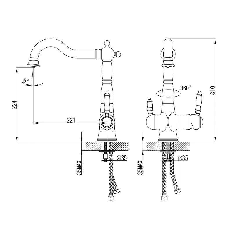 Смеситель для кухни Lemark Villa LM4858B имеет поворотный излив. Изготовлен из качественной латуни и имеет защитное покрытие, что способствует устойчивости к коррозии и резким перепадам температуры. Рычажное управление, горизонтальный монтаж на одно отверстие.