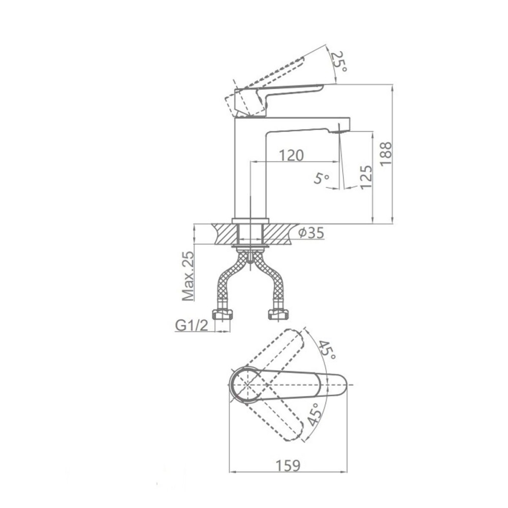 Смеситель для раковины D&K Bayern.Munchen имеет литой излив. Изготовлен из качественной латуни и имеет защитное покрытие, что способствует устойчивости к коррозии и резким перепадам температуры. Управление рычажное, горизонтальный монтаж на одно отверстие.