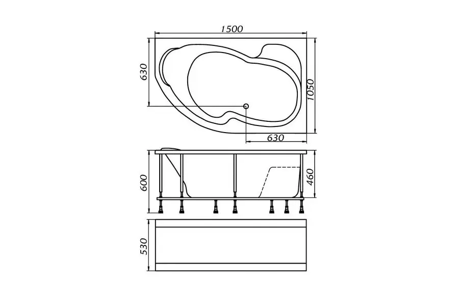 Акриловая ванна 1MarKa из коллекции Aura имеет размер 150х105. Форма — асимметричная. Страна изготовитель — Россия. Дополнительно комплектуется каркасом, смесителем, сточным комплектом, передней и/или боковой панелью.
