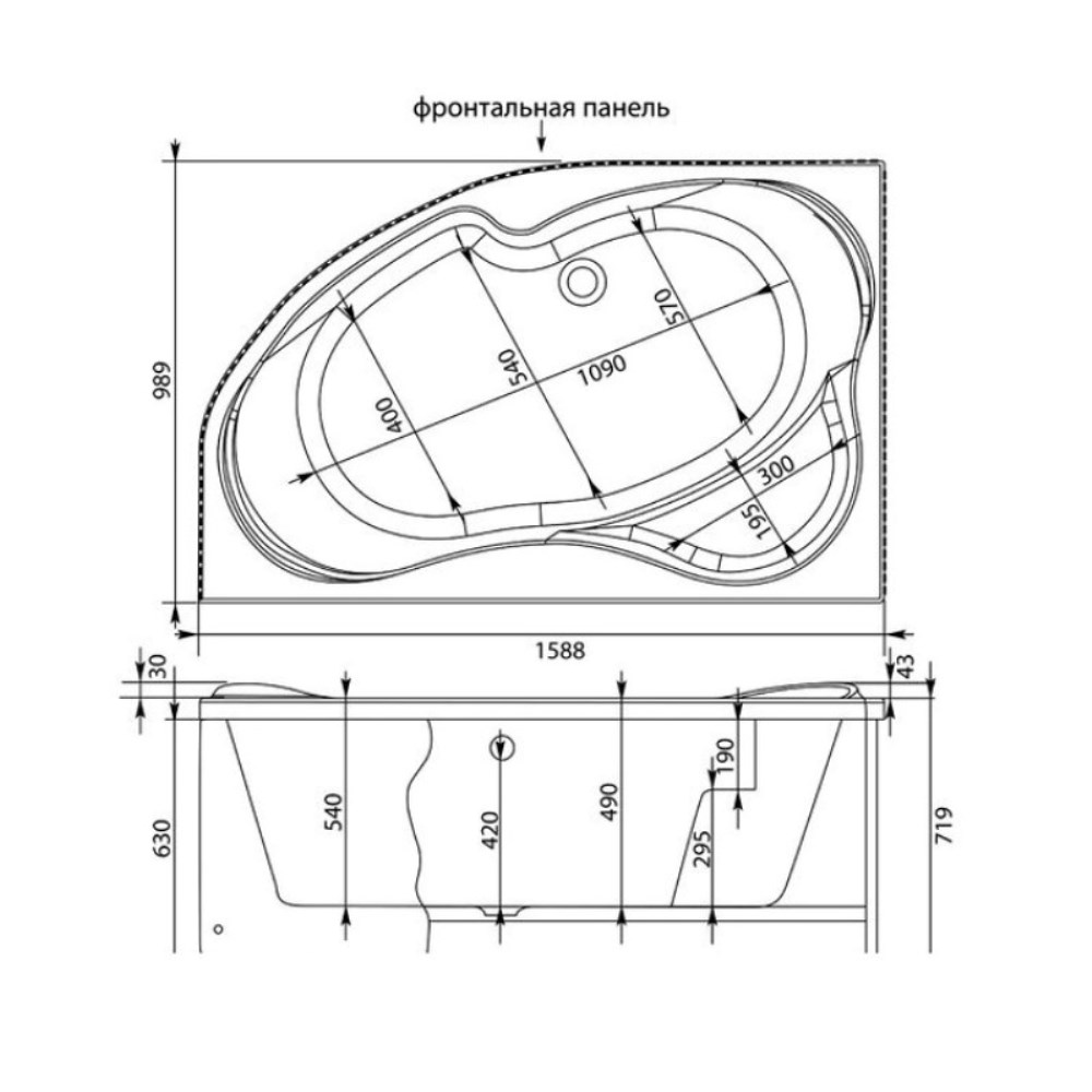 Ванна акриловая Aquanet Capri имеет размер 160х100 см. Асимметричная форма. Дополнительно комплектуется каркасом, смесителем, сточным комплектом, передней панелью.