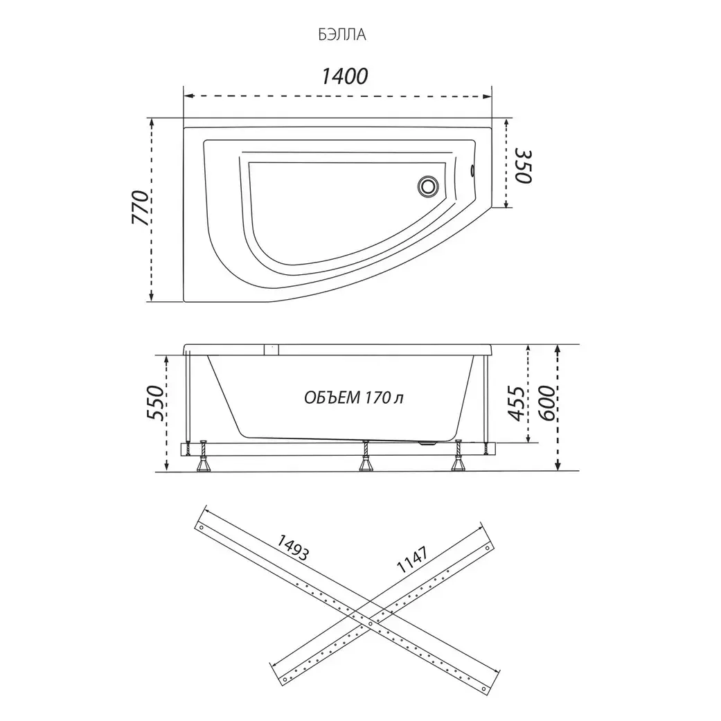- Объем: 170 литров.