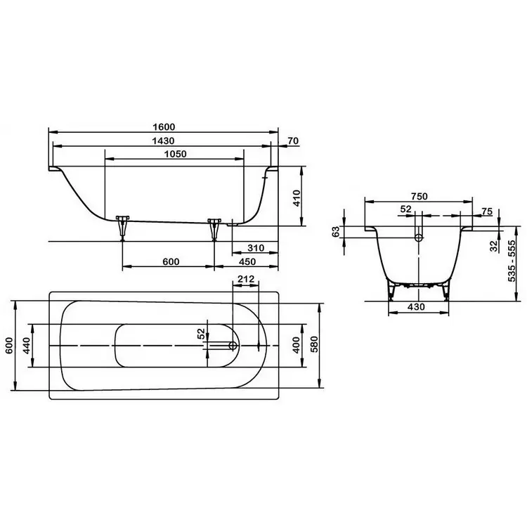 Ванна стальная Kaldewei Saniform Plus 372-1 160х75